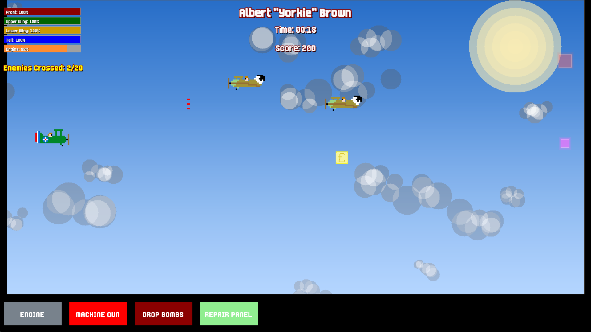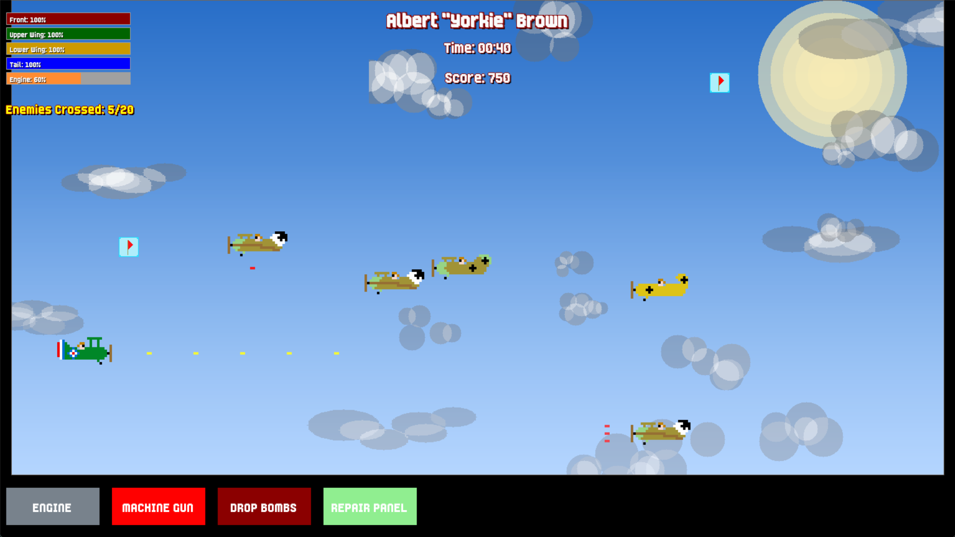 Your plane isn't reliable: your machine gun jams, barrels overheat, ammo runs dry, and parts constantly break. While dodging enemies, you'll need to repair systems, reload ammunition, and keep your aircraft from falling apart.